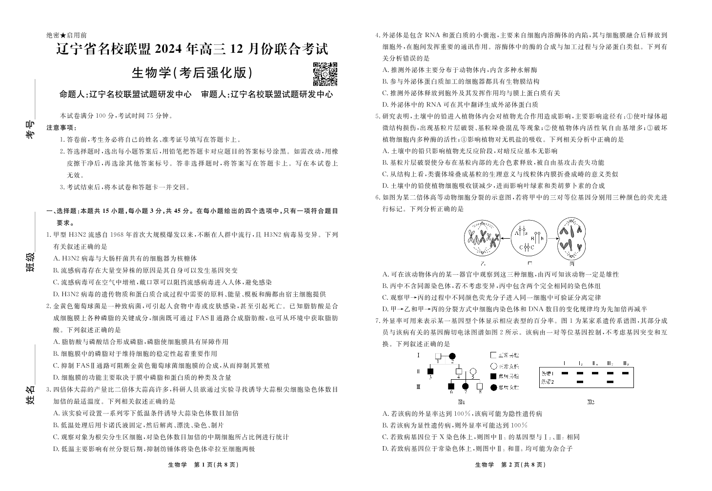 辽宁省名校联盟2024年高三12月份联合考试 生物