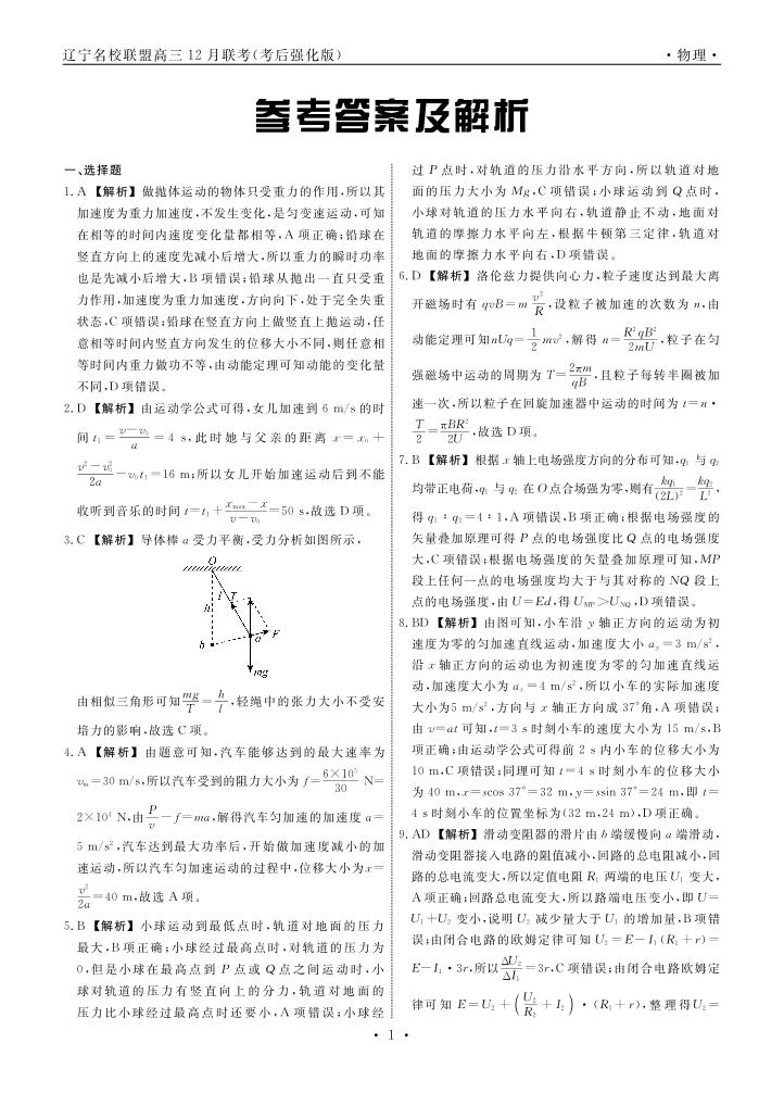 辽宁省名校联盟2024年高三12月份联合考试 物理答案