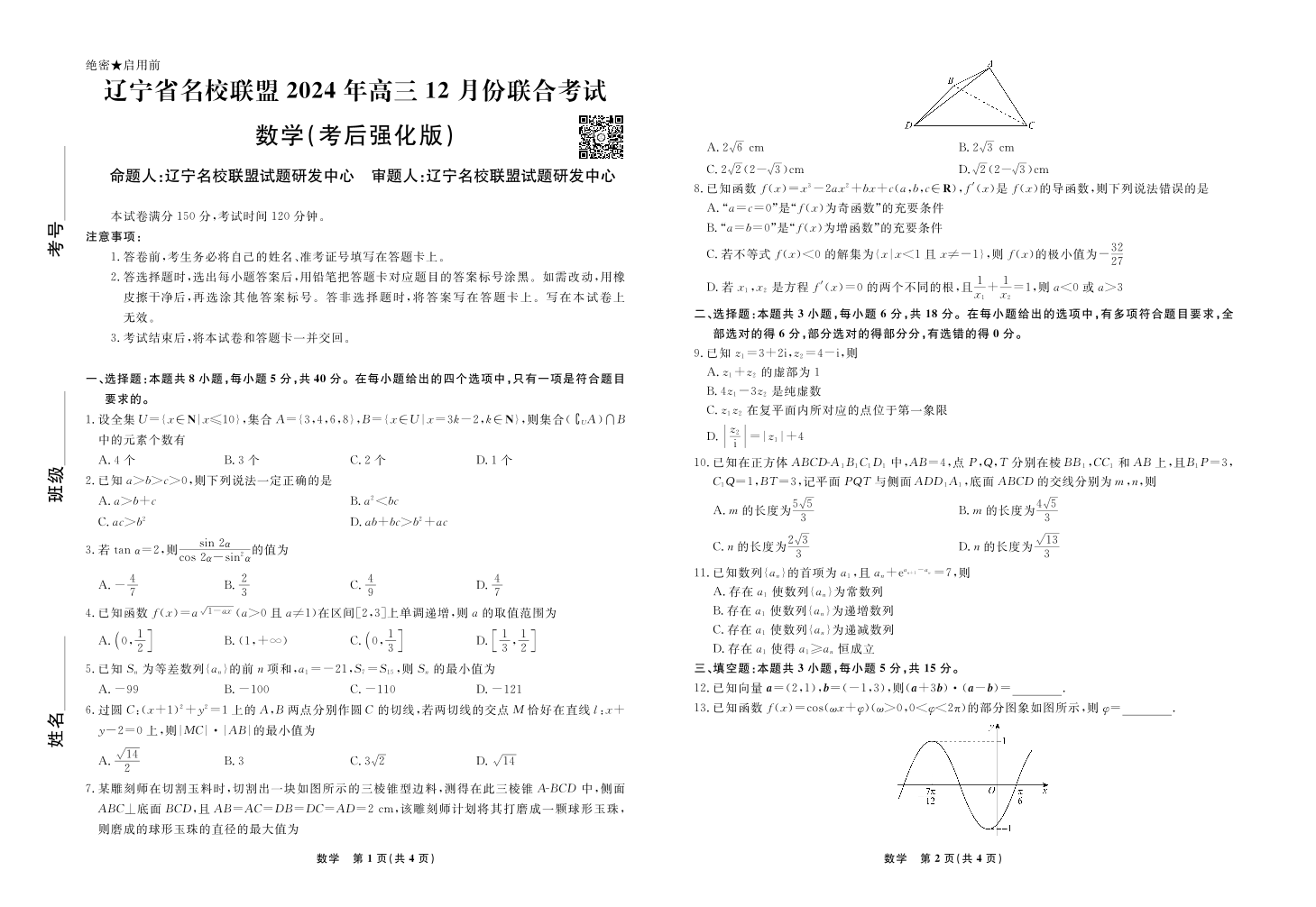 辽宁省名校联盟2024年高三12月份联合考试 数学