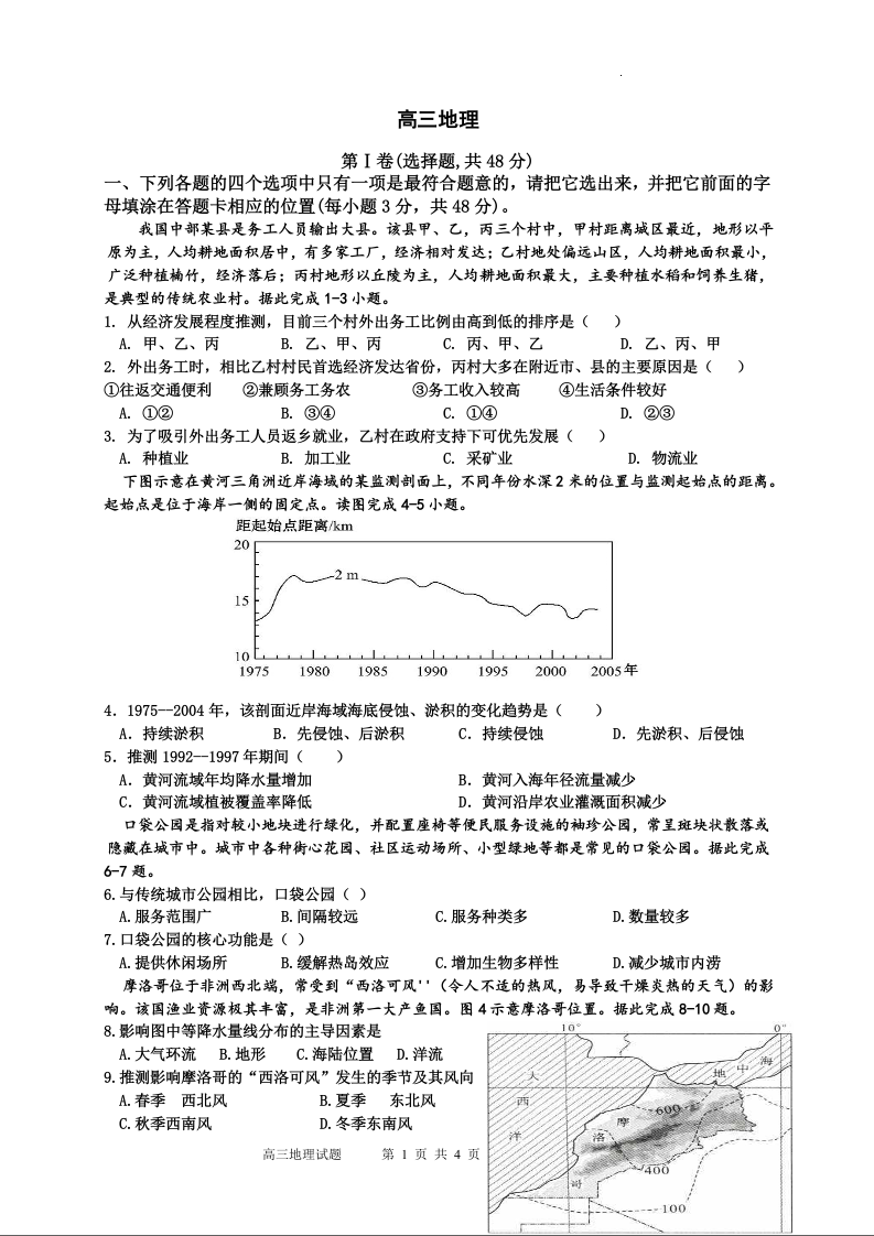 四川省成都列五中学2024-2025学年高三上学期12月月考 地理
