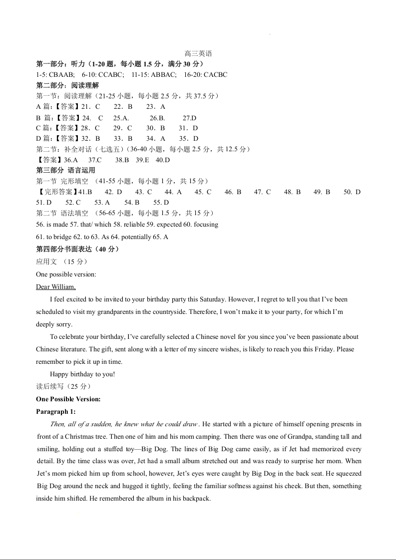 四川省成都列五中学2024-2025学年高三上学期12月月考 英语答案