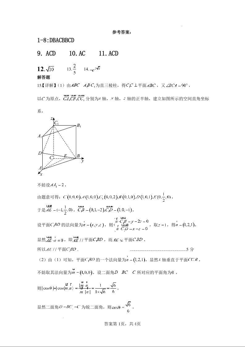 四川省成都列五中学2024-2025学年高三上学期12月月考 数学答案