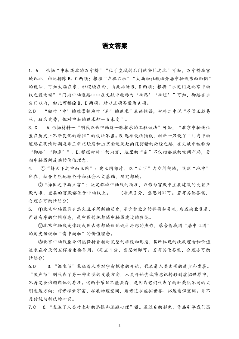 四川省成都列五中学2024-2025学年高三上学期12月月考 语文答案