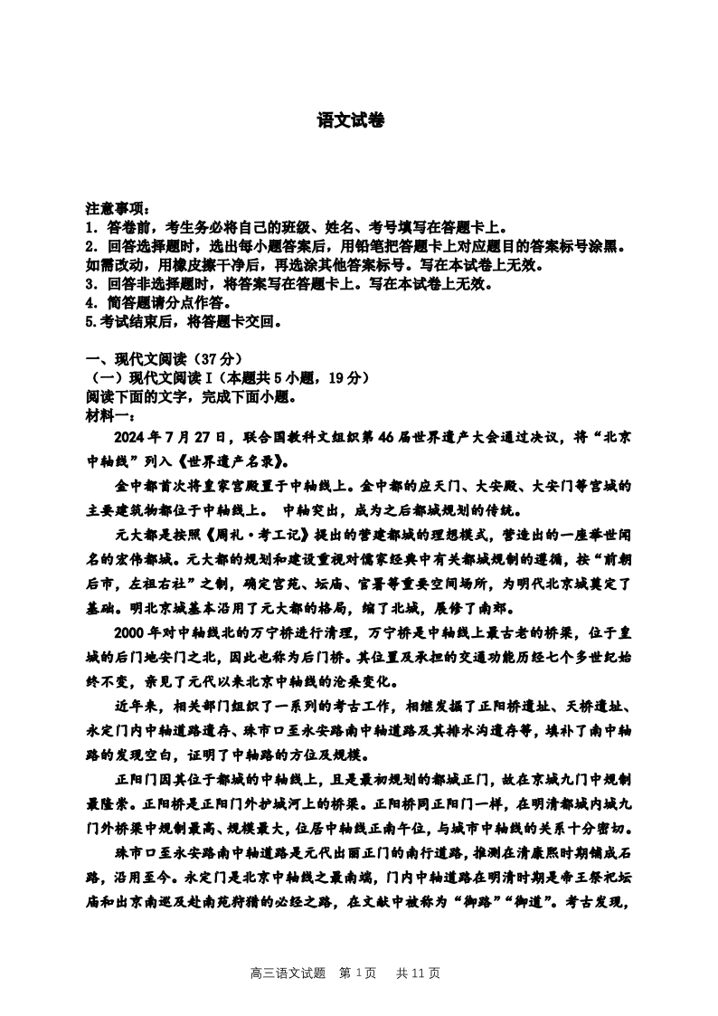 四川省成都列五中学2024-2025学年高三上学期12月月考 语文