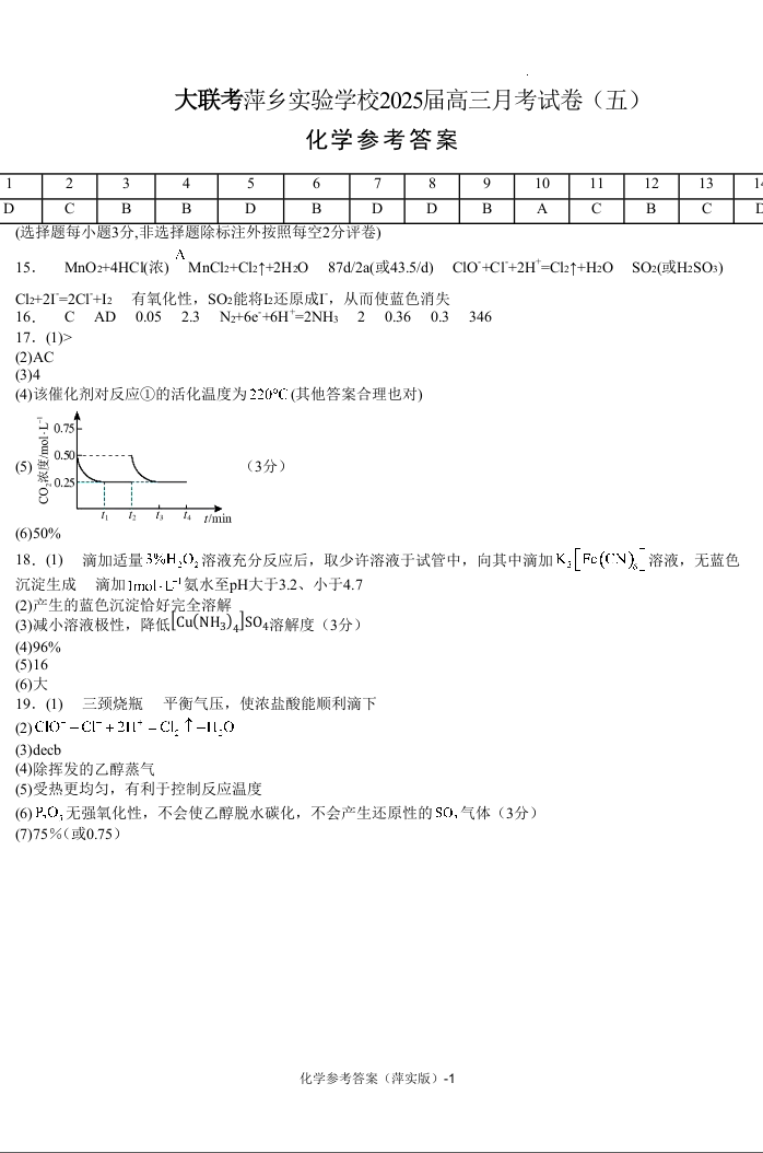 江西省萍乡市萍乡实验学校2025届高三月考试卷(五)化学答案