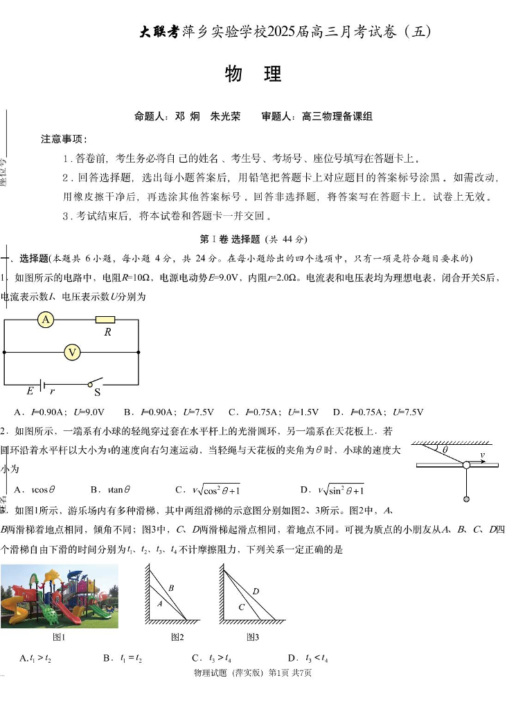 江西省萍乡市萍乡实验学校2025届高三月考试卷(五)物理