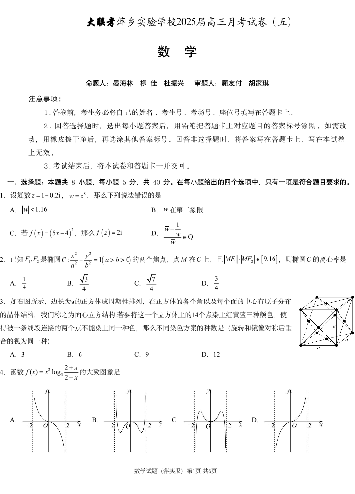 江西省萍乡市萍乡实验学校2025届高三月考试卷(五)数学