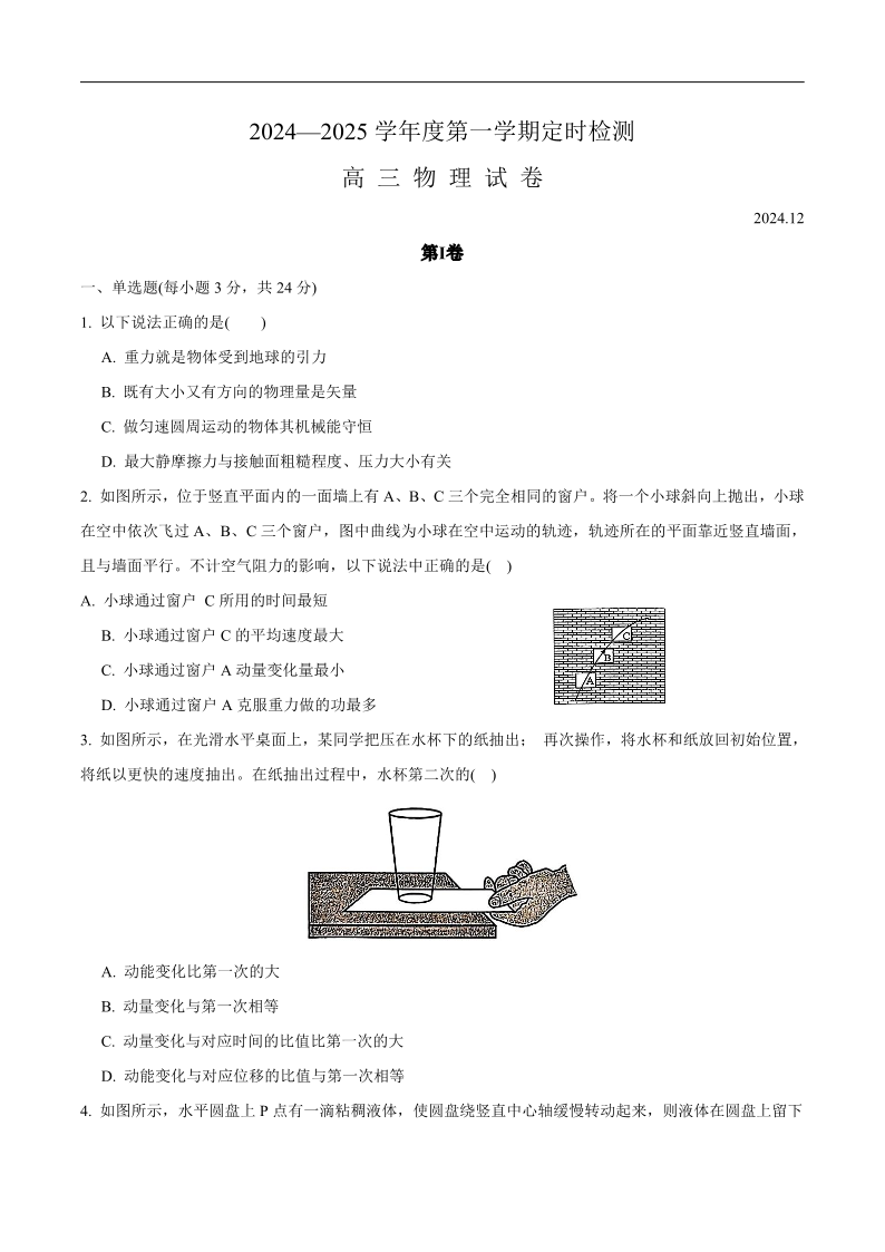 山东省滕州市第一中学2025届高三上学期12月定时检测 物理
