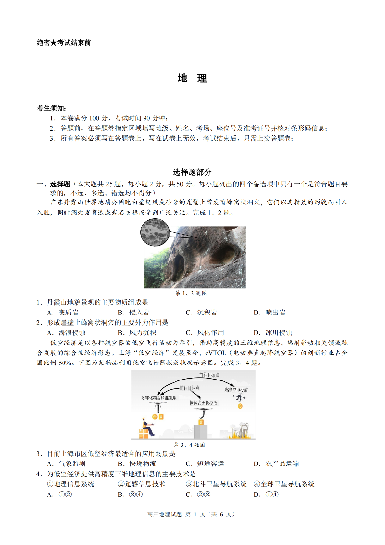 浙江省慈溪中学、舟山中学等多校2025届高三上学期期中考试 地理