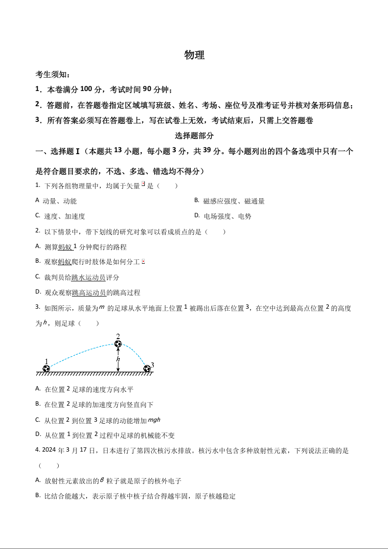 浙江省慈溪中学、舟山中学等多校2025届高三上学期期中考试 物理