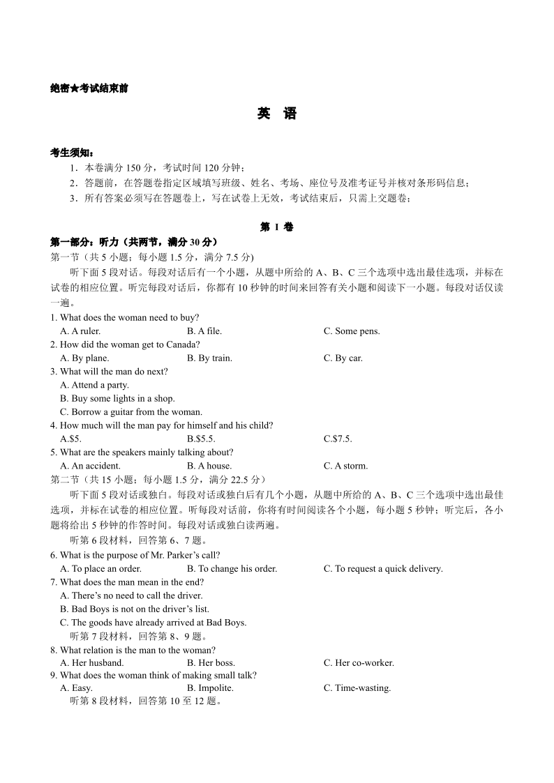 浙江省慈溪中学、舟山中学等多校2025届高三上学期期中考试 英语