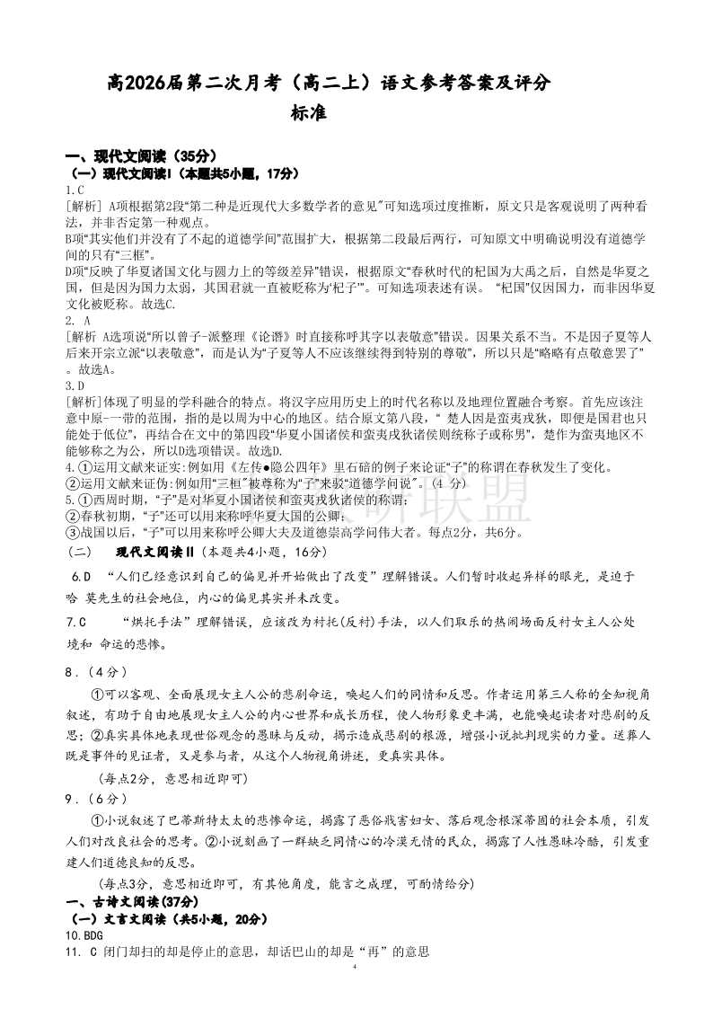 四川省达州市万源中学2024-2025学年高二上学期第二次月考 语文答案.pdf