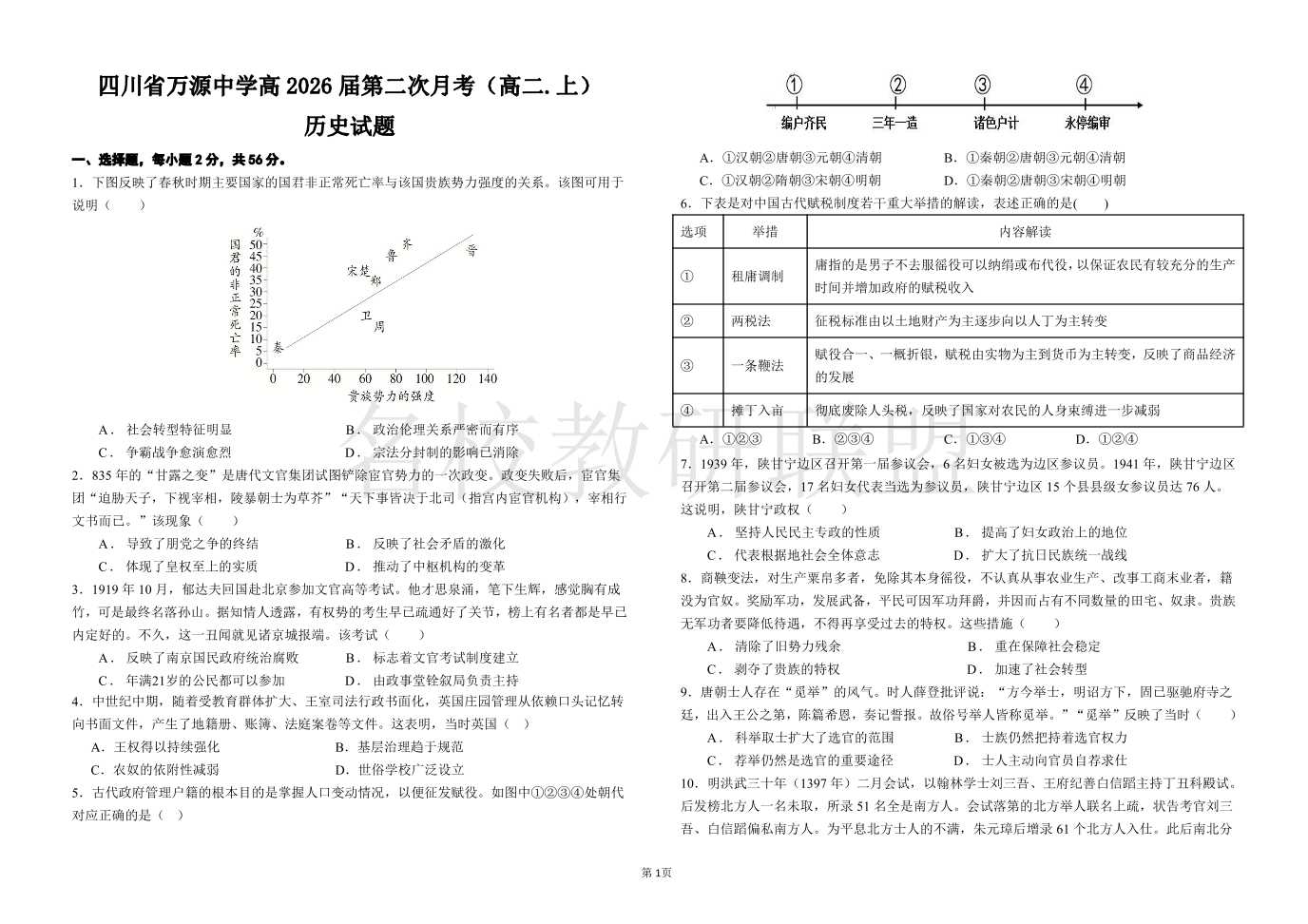 四川省达州市万源中学2024-2025学年高二上学期第二次月考 历史.pdf