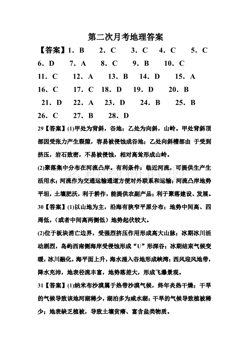 四川省达州市万源中学2024-2025学年高二上学期第二次月考 地理答案.pdf