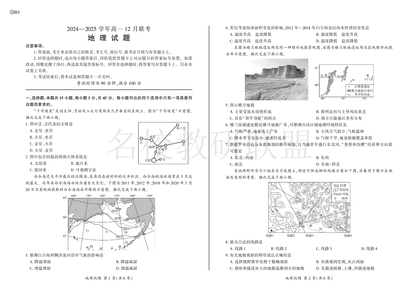 山东省百师联考2024-2025学年高一上学期12月月考 地理.pdf