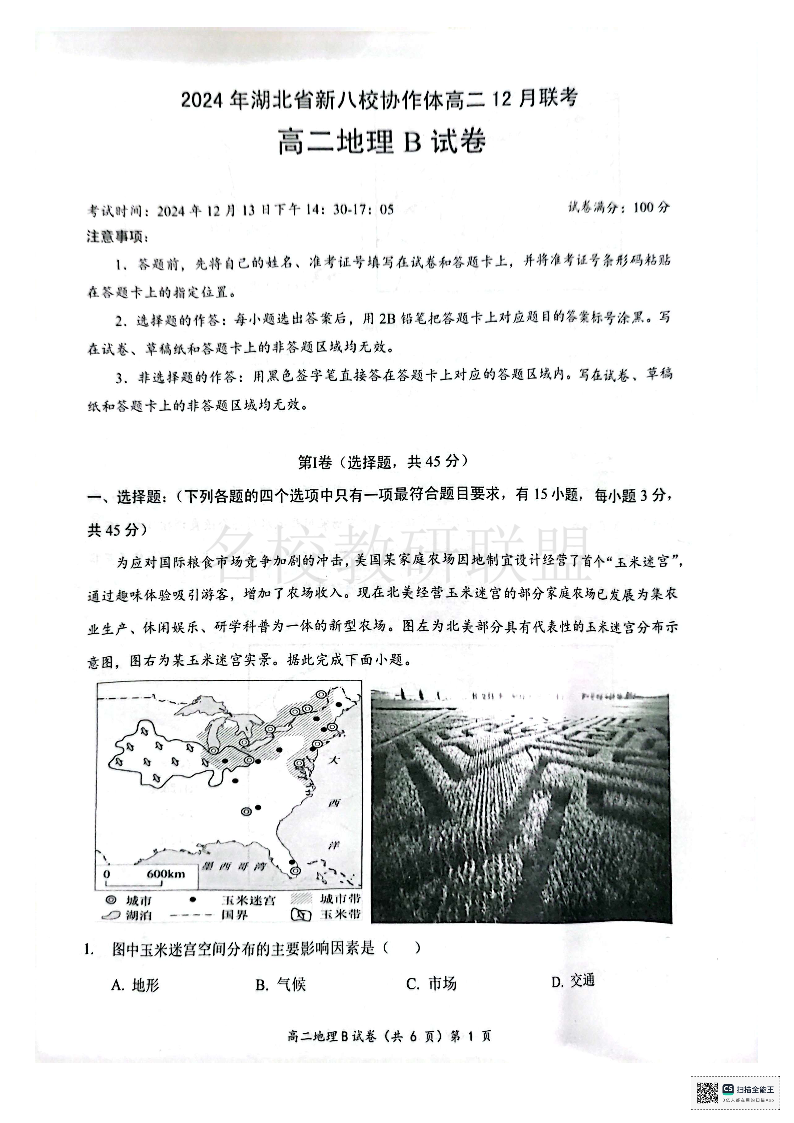 2024年湖北省新八校协作体高二12月联考 地理.pdf