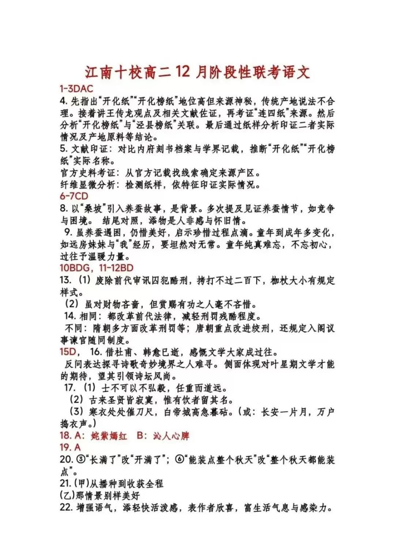 安徽省2024年”江南十校“高二年级12月阶段联考 语文答案.pdf
