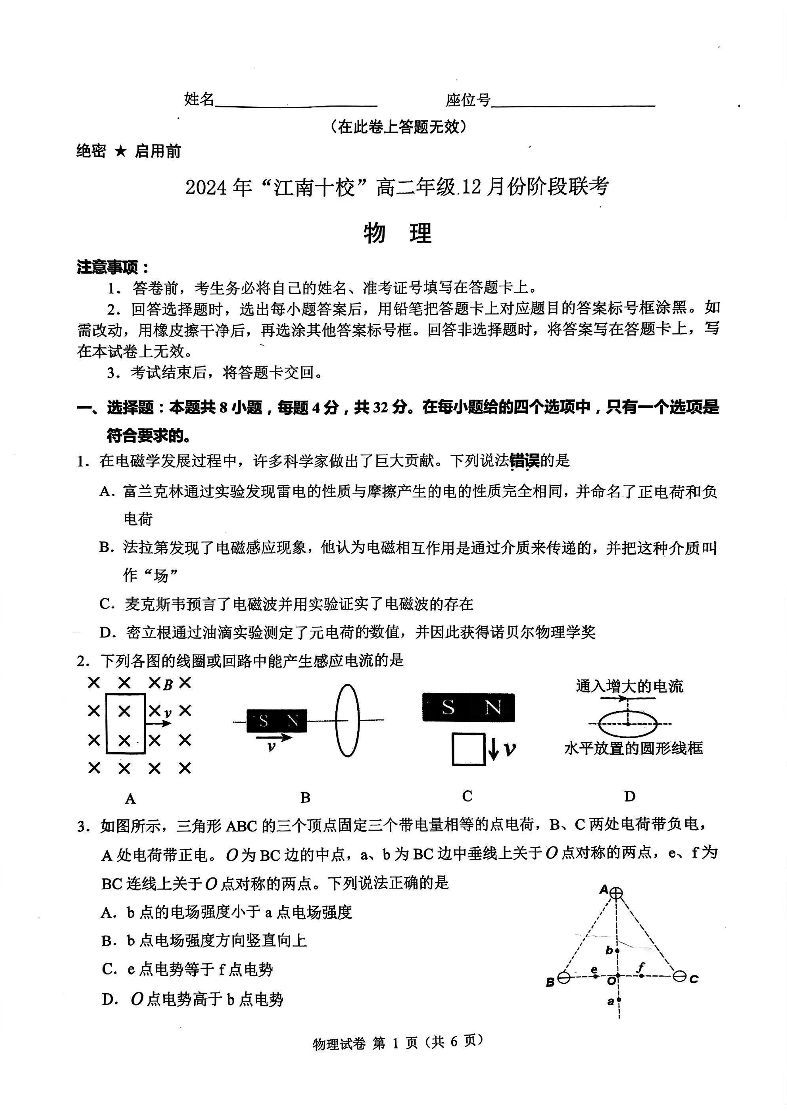 安徽省2024年”江南十校“高二年级12月阶段联考 物理.pdf