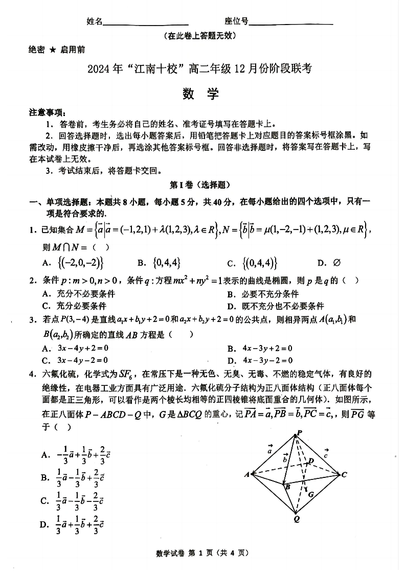 安徽省2024年”江南十校“高二年级12月阶段联考 数学.pdf