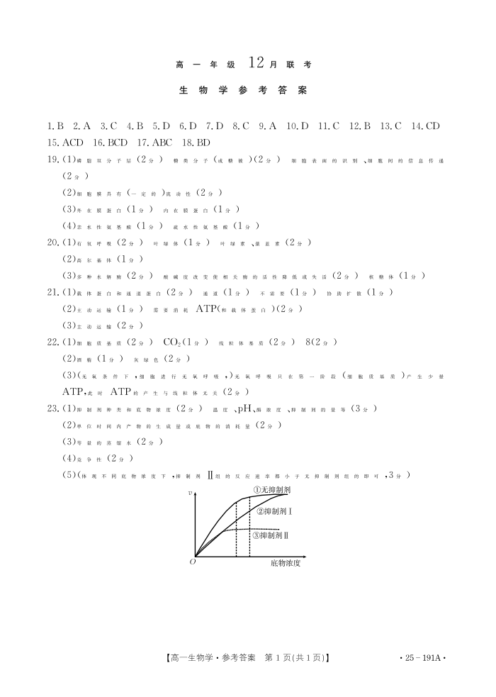 河北省百万联考2024-2025学年高一上学期12月联考 生物答案.pdf