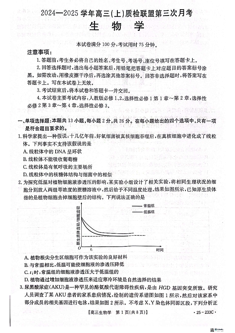 河北省2024-2025学年高三(上)质检联盟第三次月考 生物.pdf
