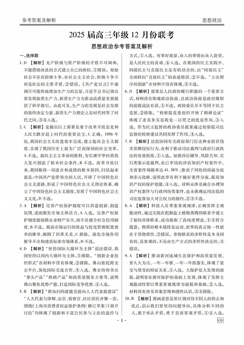 广东省衡水金卷2025届高三上学期12月联考 政治答案.pdf