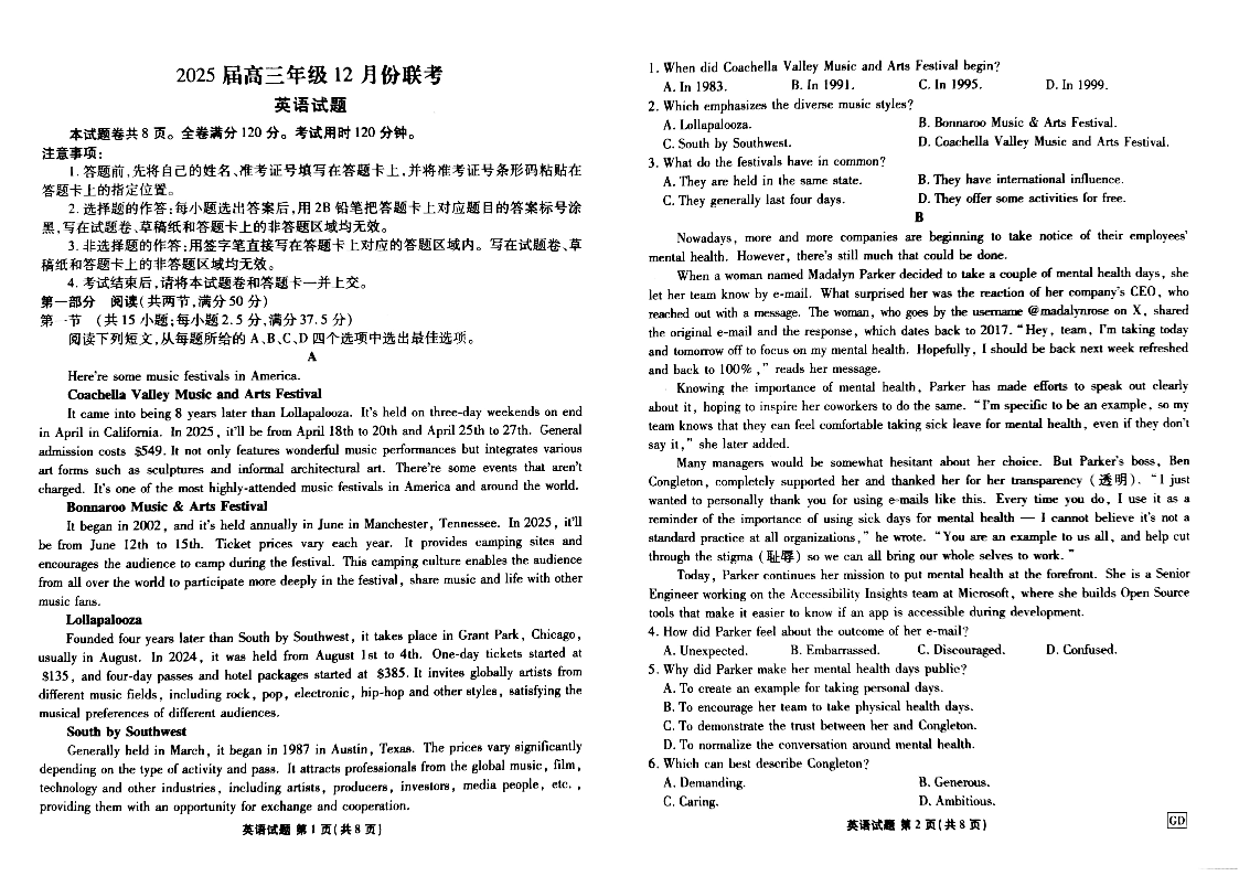 广东省衡水金卷2025届高三上学期12月联考 英语.pdf
