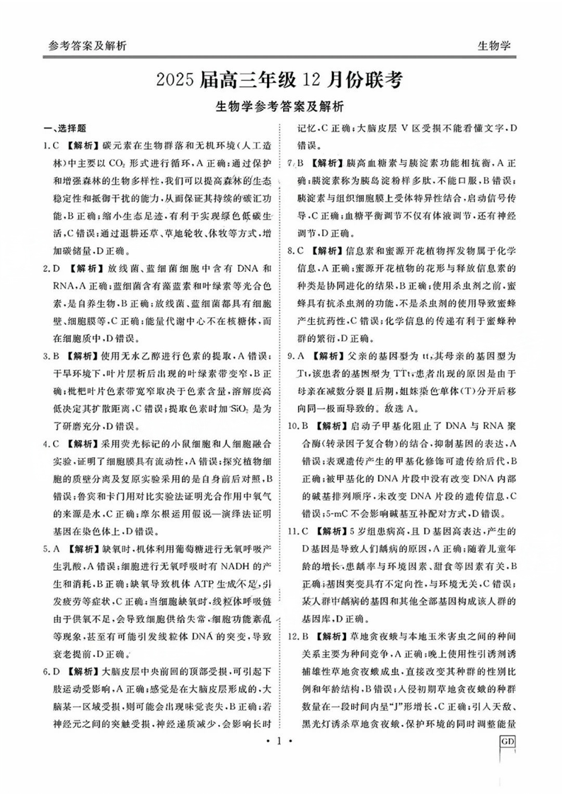 广东省衡水金卷2025届高三上学期12月联考 生物答案.pdf