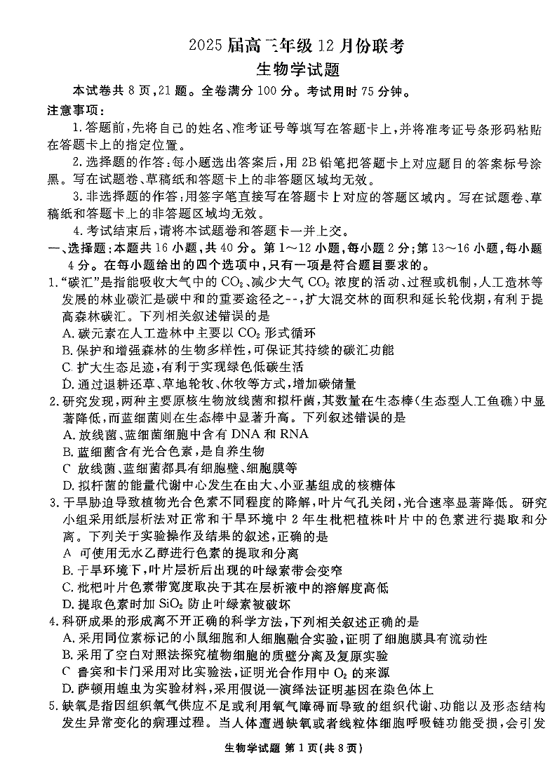广东省衡水金卷2025届高三上学期12月联考 生物.pdf