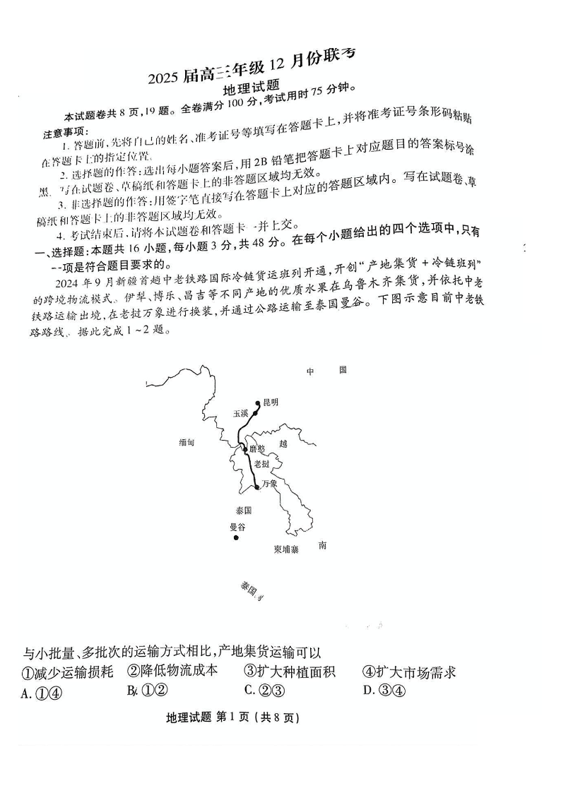 广东省衡水金卷2025届高三上学期12月联考 地理.pdf