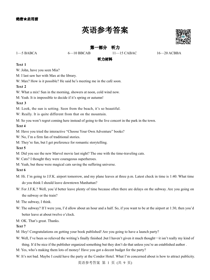 名校教研联盟2025届高三12月联考 英语参考答案.pdf