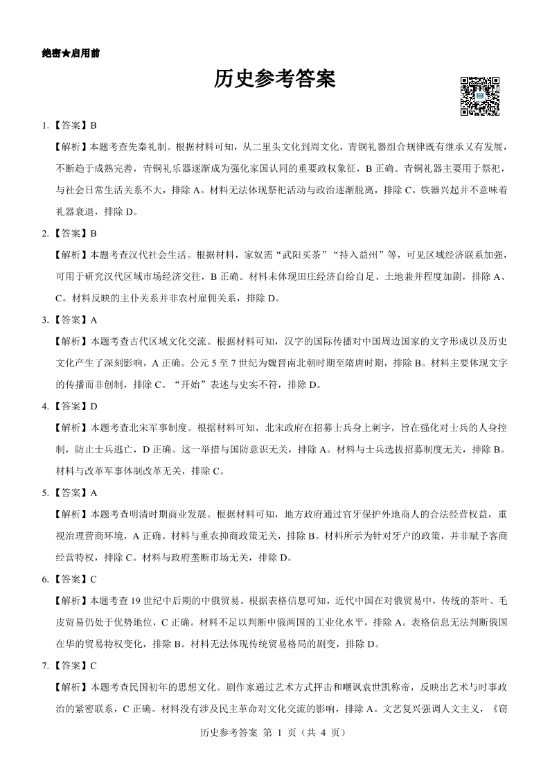 名校教研联盟2025届高三12月联考 历史参考答案.pdf
