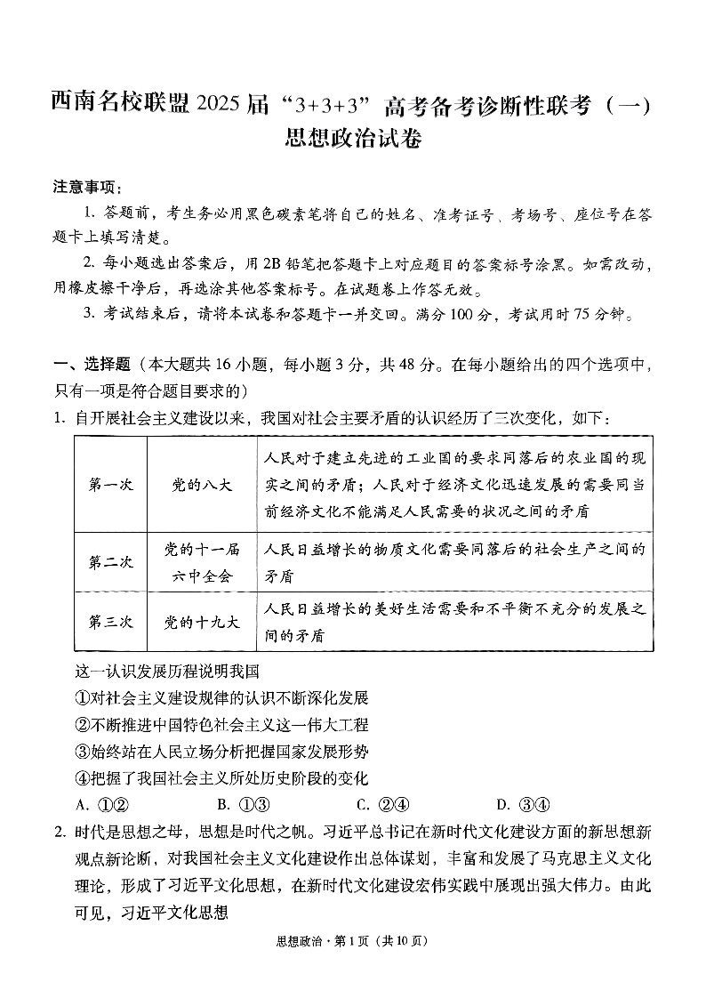 西南名校联盟 2025届 “3+3+3”高考备考诊断性联考(一)政治.pdf