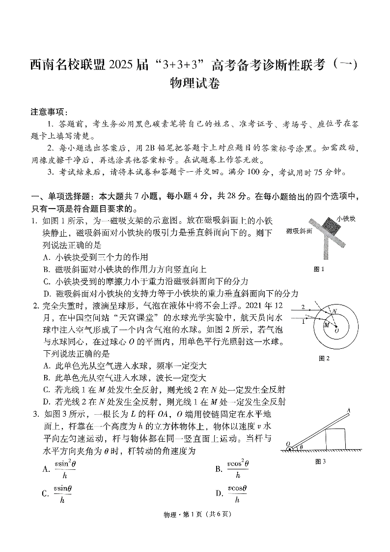 西南名校联盟 2025届 “3+3+3”高考备考诊断性联考(一)物理.pdf