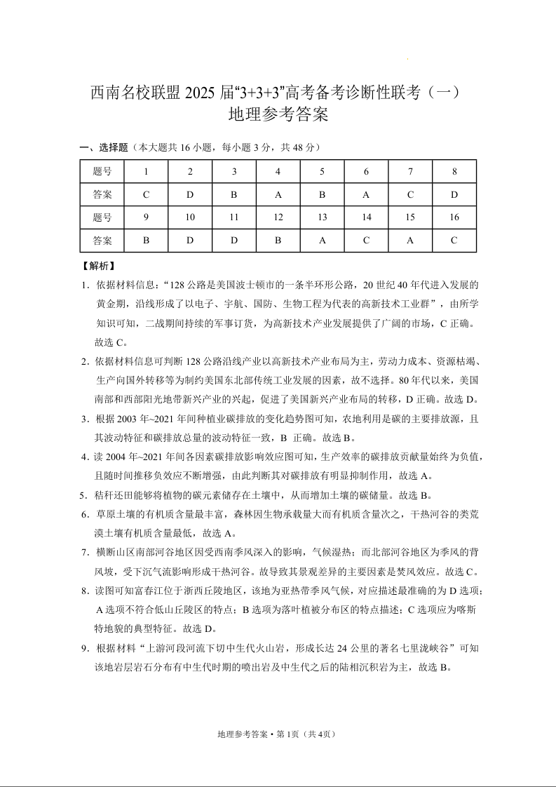 西南名校联盟 2025届 “3+3+3”高考备考诊断性联考(一)地理答案.docx