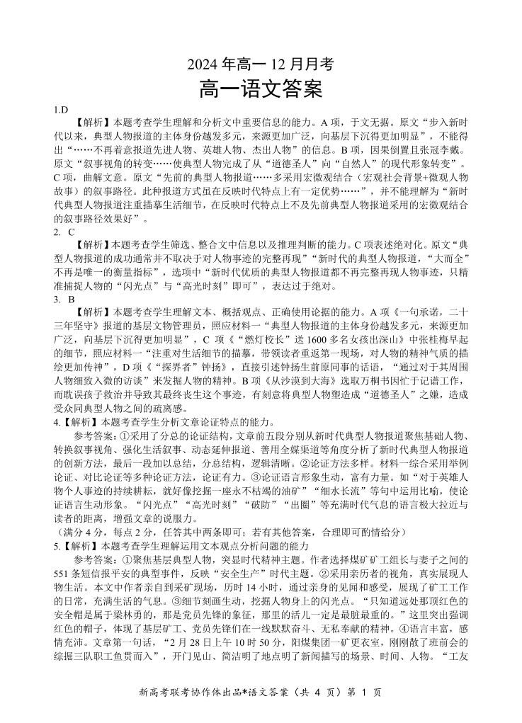 湖北省新高考联考协作体2024年高一12月月考 语文答案.pdf