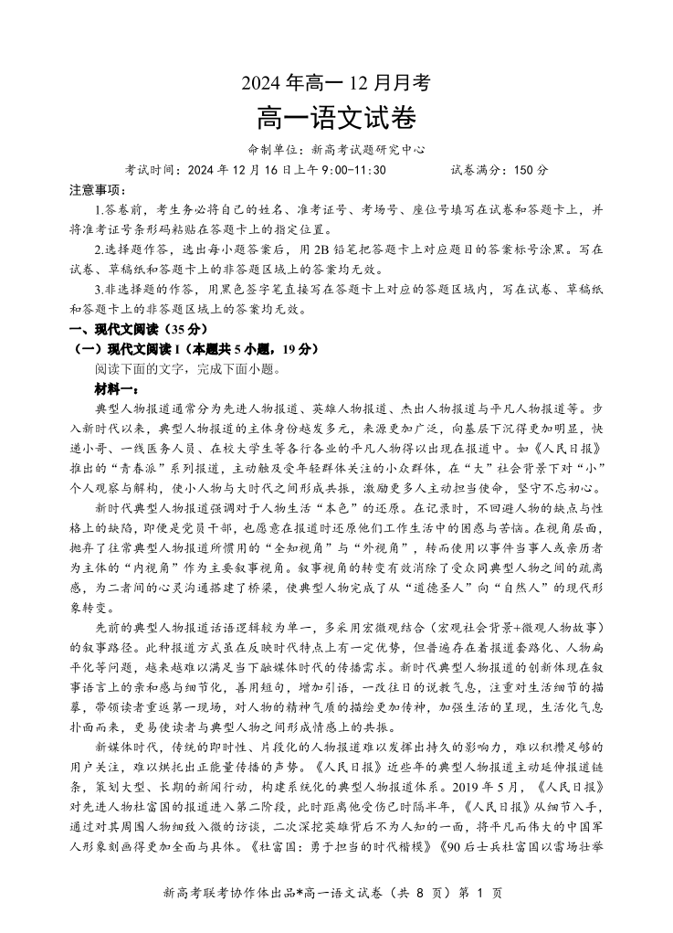 湖北省新高考联考协作体2024年高一12月月考 语文.pdf