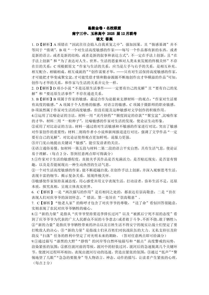 邕衡金卷·名校联盟2025届高三12月联考 语文答案.pdf