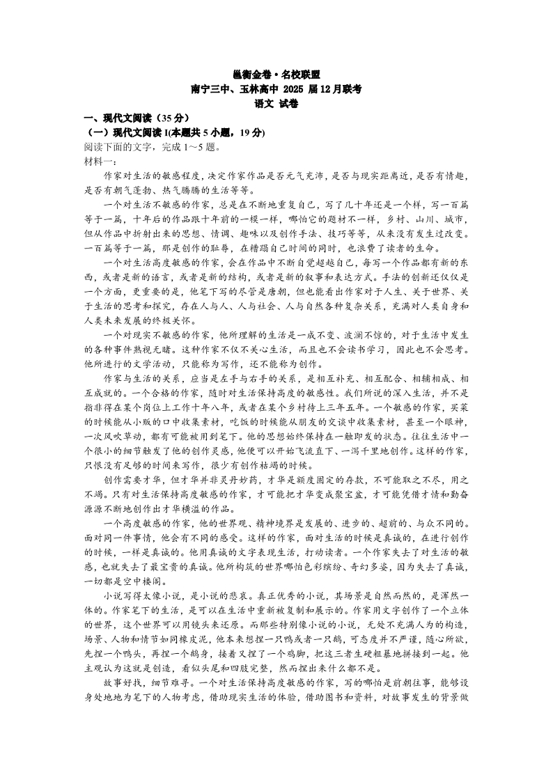 邕衡金卷·名校联盟2025届高三12月联考 语文.pdf