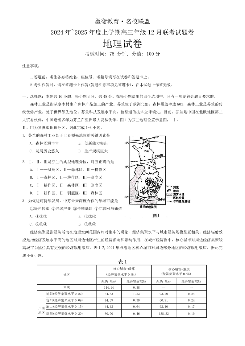 邕衡金卷·名校联盟2025届高三12月联考 地理.pdf