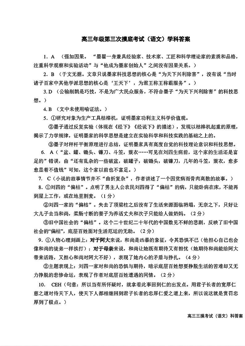 东北师范大学附属中学2024-2025学年高三上学期第三次摸底考试 语文答案.pdf
