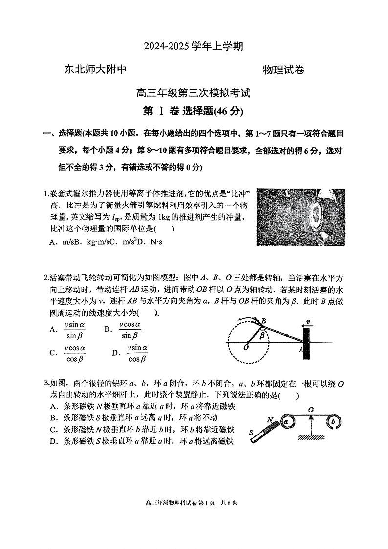 东北师范大学附属中学2024-2025学年高三上学期第三次摸底考试 物理.pdf