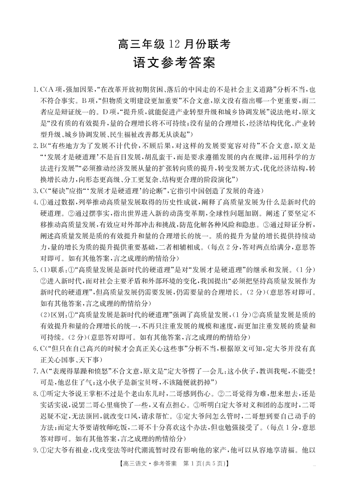 河北省保定市十县一中2024-2025学年高三上学期12月联考 语文答案.pdf