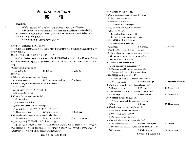 河北省保定市十县一中2024-2025学年高三上学期12月联考 英语.pdf