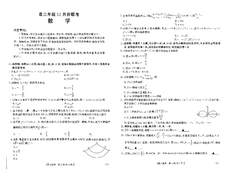 河北省保定市十县一中2024-2025学年高三上学期12月联考 数学.pdf