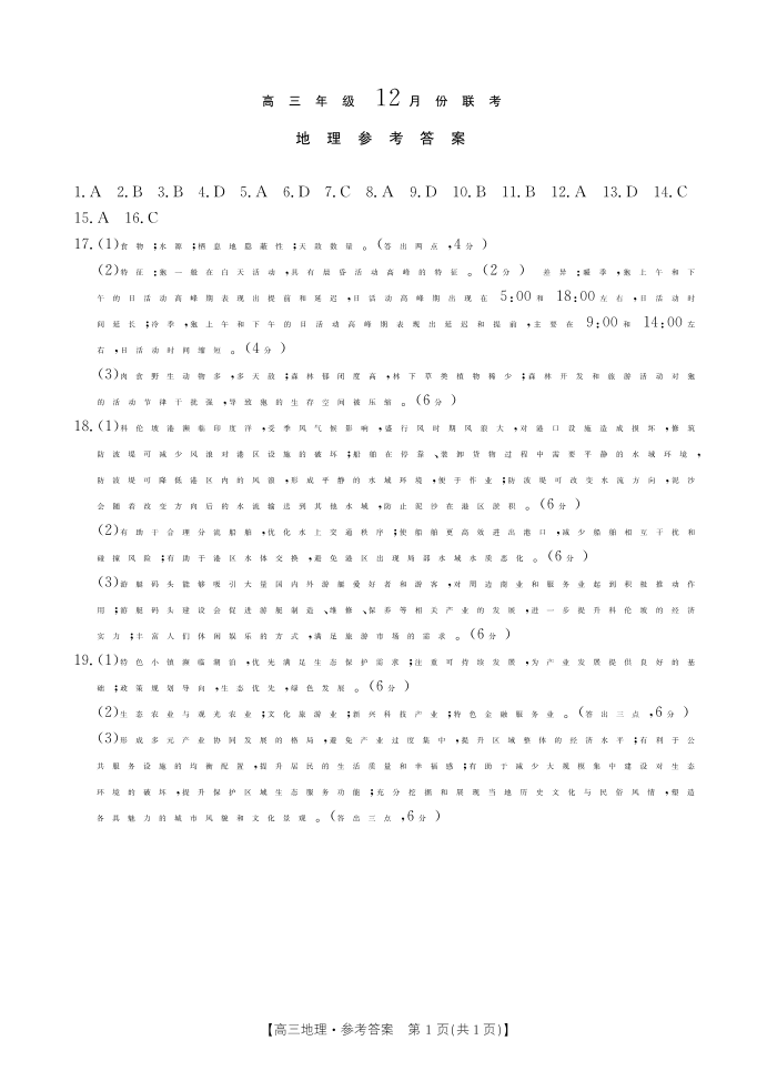 河北省保定市十县一中2024-2025学年高三上学期12月联考 地理答案.pdf