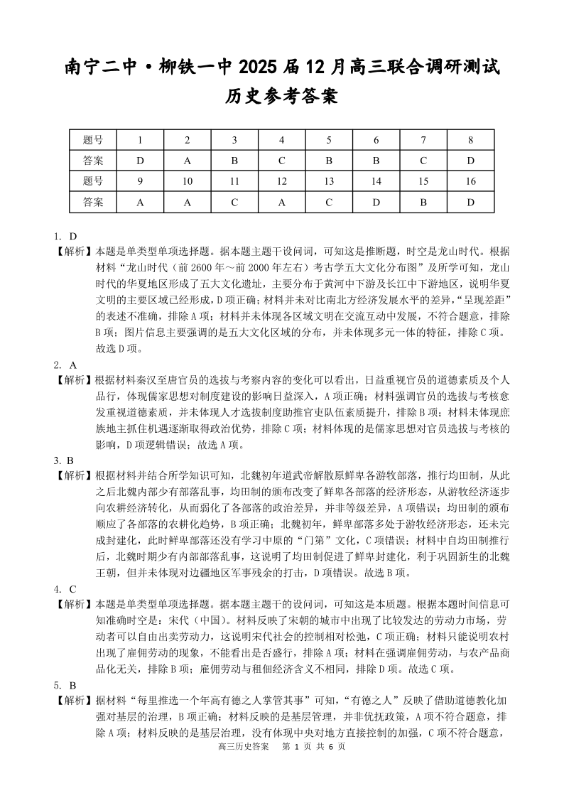 南宁二中·柳铁一中2025届12月高三联合调研测试 历史答案.pdf