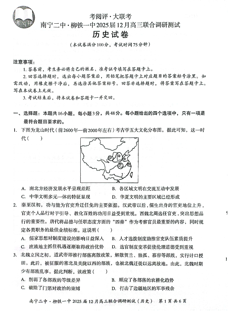南宁二中·柳铁一中2025届12月高三联合调研测试 历史.pdf