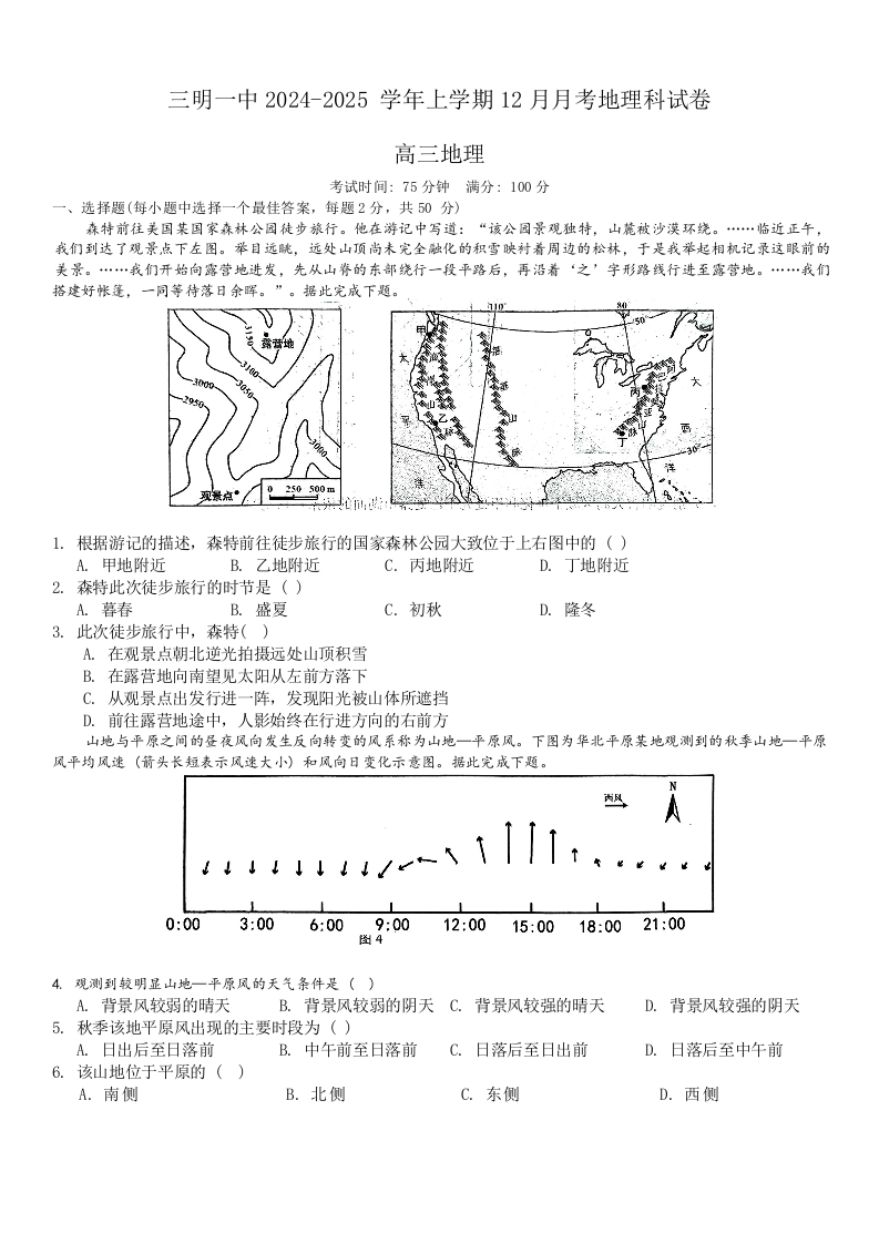 福建省三明市第一中学2025届高三上学期12月月考 地理.docx