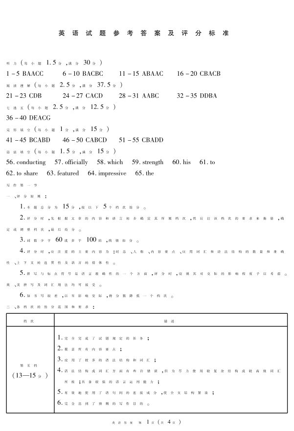 四川省九市2024-2025学年高三上学期(12月)第一次诊断性考试 英语答案.pdf